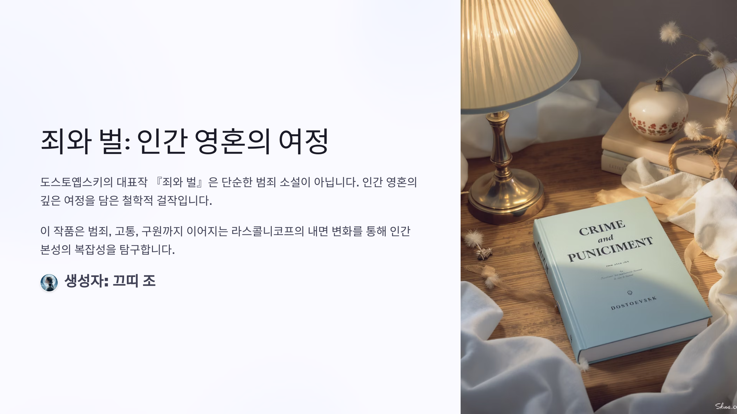 이러한 배경을 알고 『죄와 벌』을 다시 읽는다면, 라스콜니코프의 선택 하나하나에 담긴 깊은 의미를 더 명확히 이해할 수 있을 거예요. 그냥 범죄 소설로 보는 건 너무 아쉬운 일이에요.😌