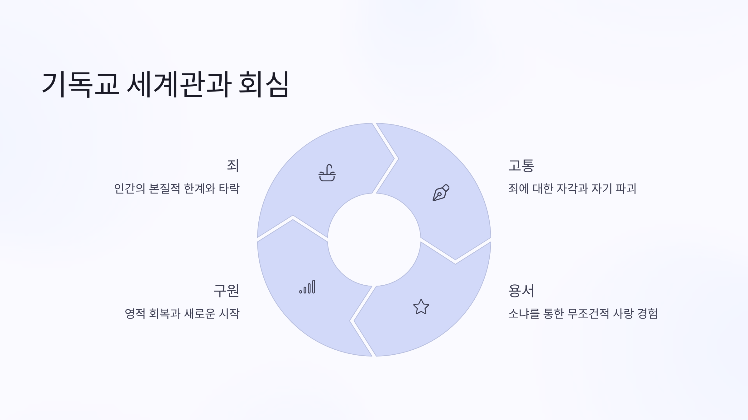 라스콜니코프의 내면 변화는 기독교적 회심 과정과 거의 일치해요. 죄를 짓고 → 고통을 겪고 → 용서를 받고 → 새로운 삶으로 나아가는 단계 말이에요. 이건 단지 개인의 심리 변화가 아니라, 영적인 갱생이에요.
