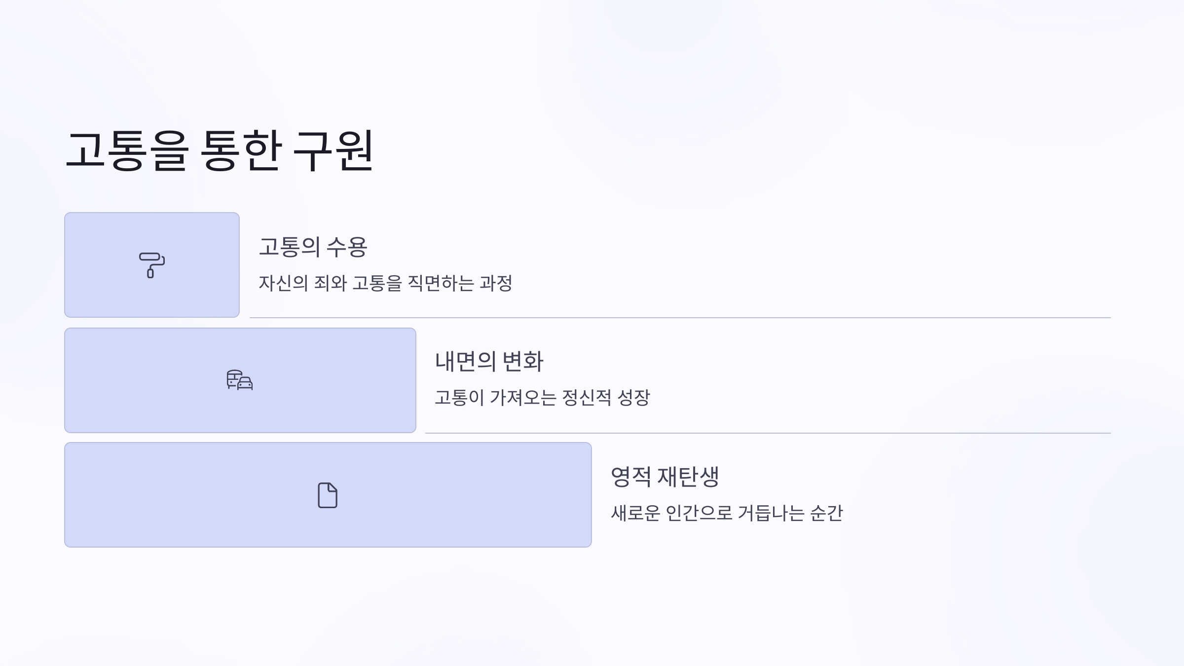 | 고통 | 죄에 대한 자각과 자기 파괴 |
