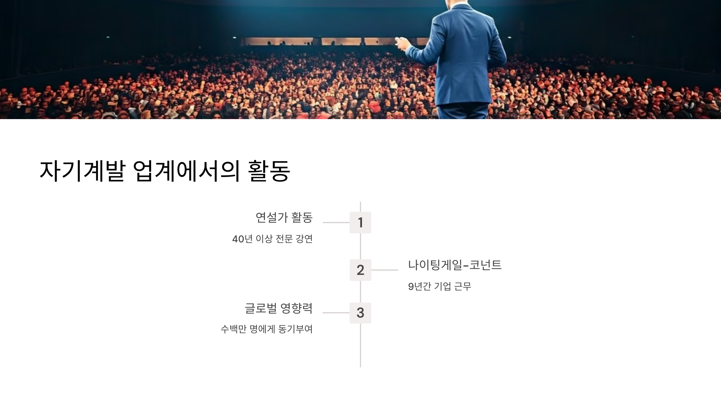 | 1970년대 | 자기계발 강연 및 컨설팅 시작 |