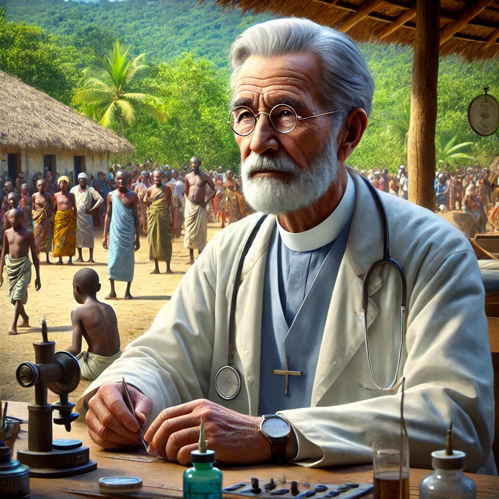 슈바이처는 프랑스령 적도 아프리카의 가봉 랑바레네에 병원을 설립하여, 열악한 환경에서 의료 혜택을 받지 못하는 이들을 위해 헌신적인 의료 활동을 펼쳤습니다. 그는 아프리카에서의 활동을 통해 의료 봉사와 인간애의 상징으로 자리매김하게 되었고, 이로 인해 1952년 노벨 평화상을 수상하기도 했습니다.