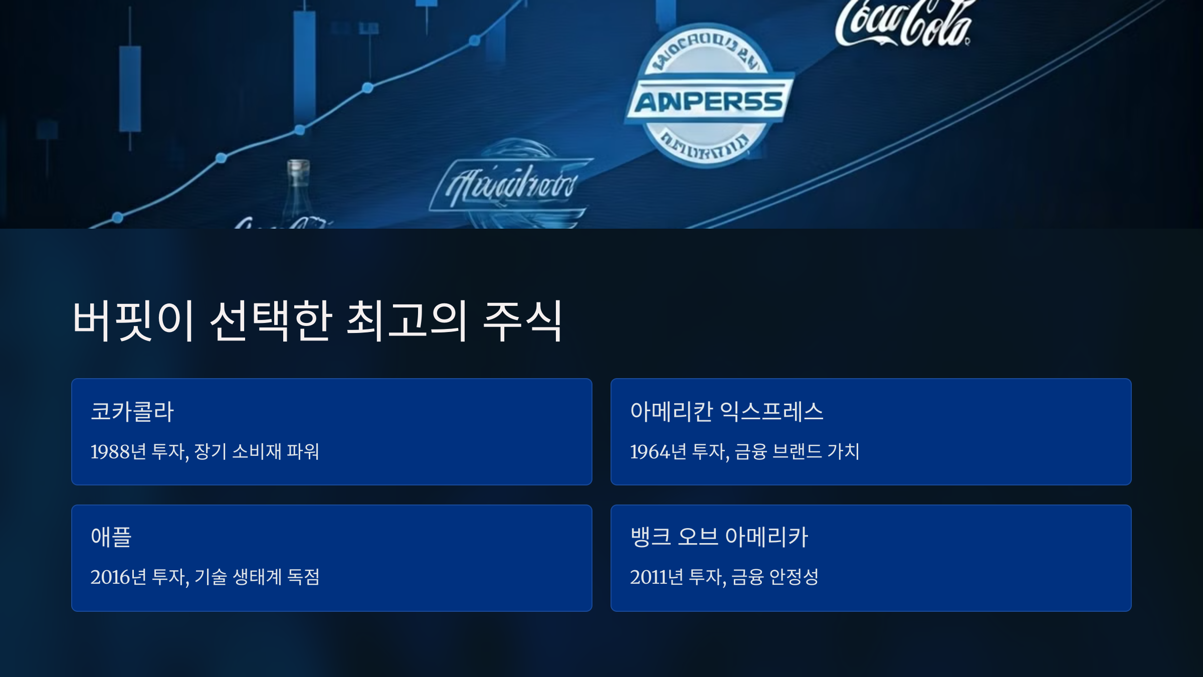 그렇다면 버핏이 직접 선택한 최고의 주식들은 무엇일까요? 그의 투자 철학을 반영한 대표적인 종목들을 살펴볼게요! 📈