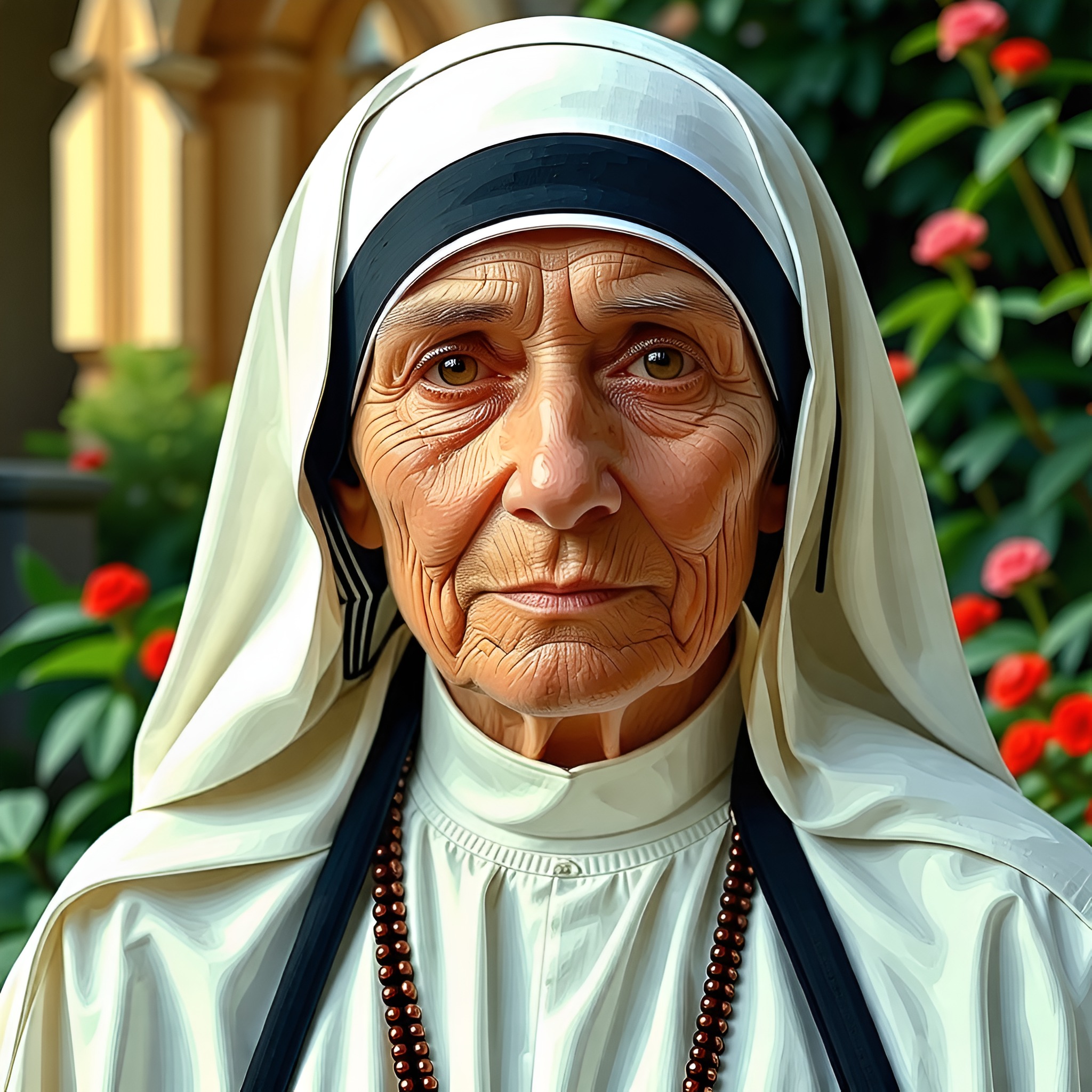 테레사 수녀는 20세기를 대표하는 인도주의자 중 한 명으로, 가난하고 소외된 사람들을 위해 평생을 헌신했습니다. 그녀의 진정한 이름은 아그네스 곤자 보야지우로, 1910년 8월 26일 북마케도니아의 스코페에서 태어났습니다. 18세에 아일랜드의 로레토 수도회에 입회하여 인도 콜카타로 파견된 후, 1948년 "사랑의 선교회"를 설립해 빈민, 병자, 고아, 죽음을 앞둔 이들을 돕기 시작했습니다. 테레사 수녀는 그들의 고통을 덜어주기 위해 헌신적인 봉사 활동을 펼쳤고, 그녀의 노력은 전 세계적으로 인정받아 1979년 노벨 평화상을 수상하게 되었습니다.