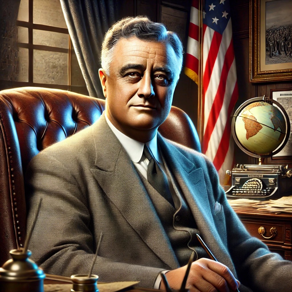 프랭클린 델라노 루스벨트(Franklin Delano Roosevelt, 1882-1945)는 미국의 제32대 대통령으로, 미국 역사상 가장 중요한 정치 지도자 중 한 명입니다. 그는 1933년부터 1945년까지 대통령직을 수행했으며, 이 기간 동안 미국은 대공황과 제2차 세계 대전을 겪었습니다. 루스벨트는 네 번의 대선에서 승리한 유일한 미국 대통령이며, 그의 지도력은 현대 미국의 방향을 결정짓는 데 중요한 역할을 했습니다.